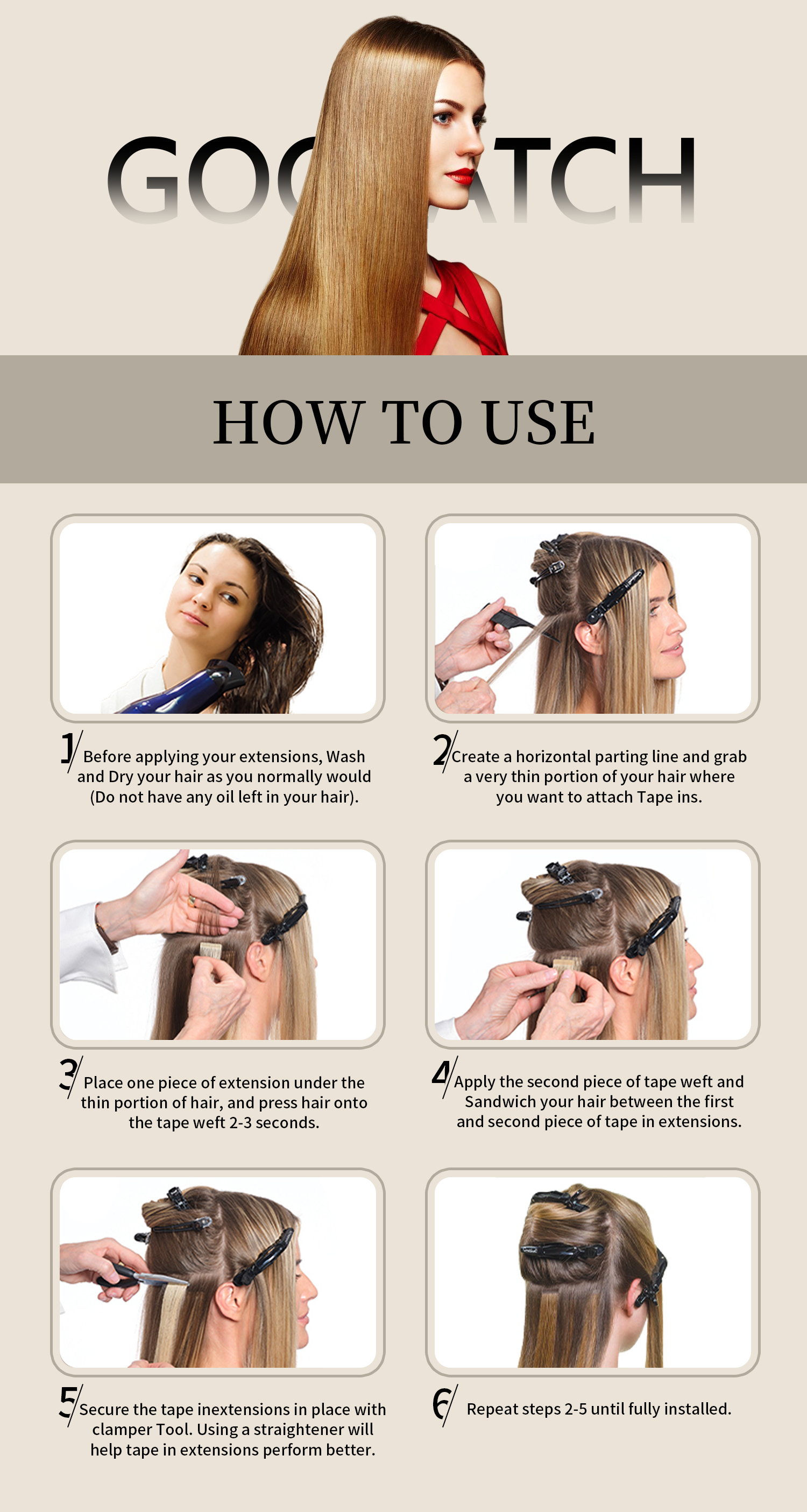 - Always remember to shampoo your hair without any conditioner before taping them in as any grease or oil could make the tape slip.