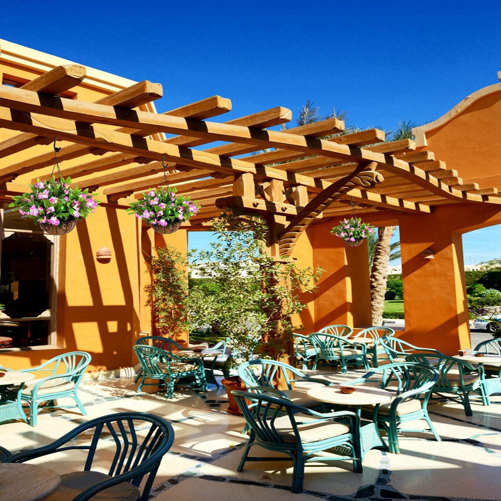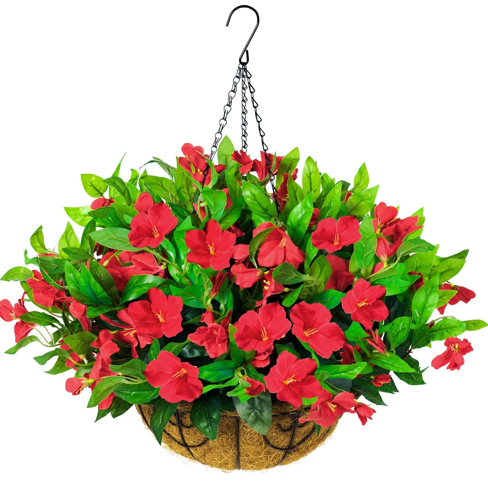 PREMIUM QUALITY: Crafted from premium materials, the cone-shaped basket and artificial morning glory flowers with dark green leaves require no maintenance post-assembly. UV-resistant and sturdy enough for any weather, ensuring enduring beauty without the need for watering.
