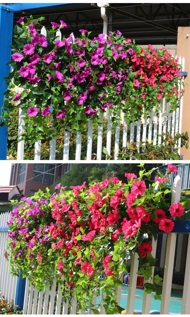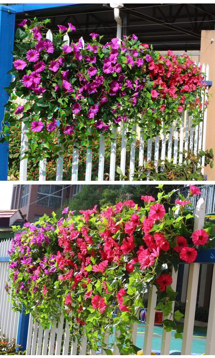 Artificial Morning glory is made of high-quality silk plastics material, making it looks very realistic.
