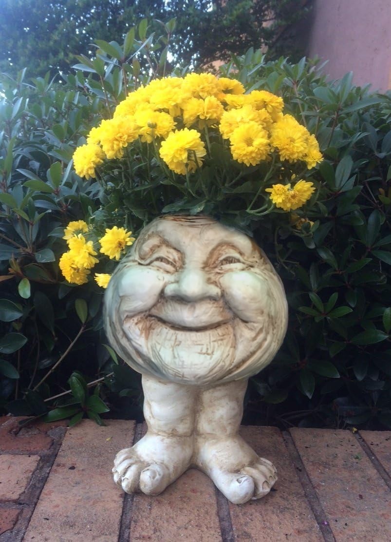 Face planters are fun because you can “style” the “hair” in them with your favorite plants. I like to plant succulents, ornamental grass, spider plants, Christmas cactus, to name a few.